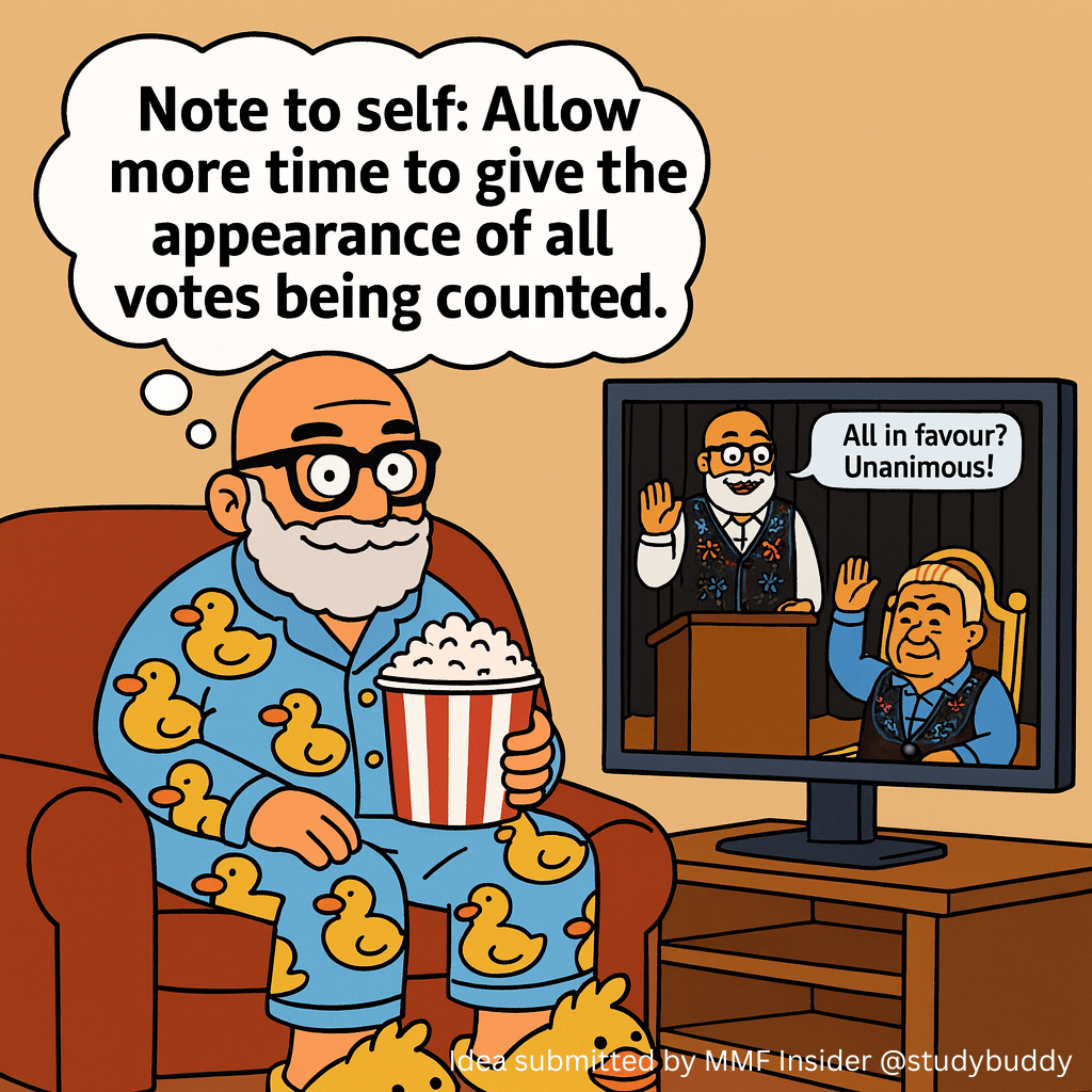 10/19/25 The irony of being made to vote for secret ballots by a show of hands…